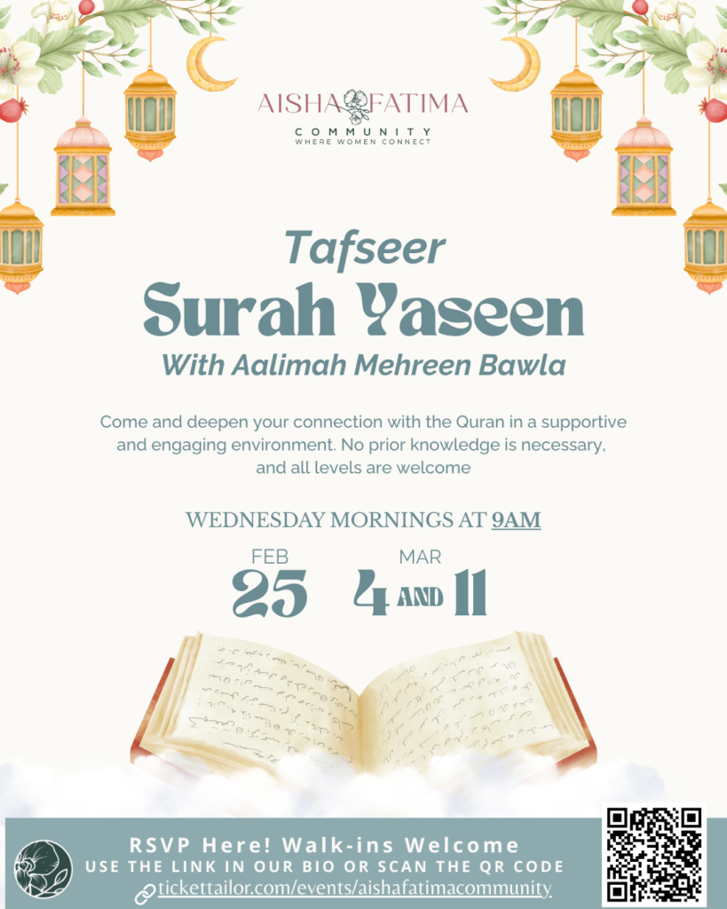 Join us for an in-depth Tafseer (exegesis) of Surah Yaseen led by Aalimah Mehreen Bawla. Explore the profound meanings and lessons within the powerful Surah.